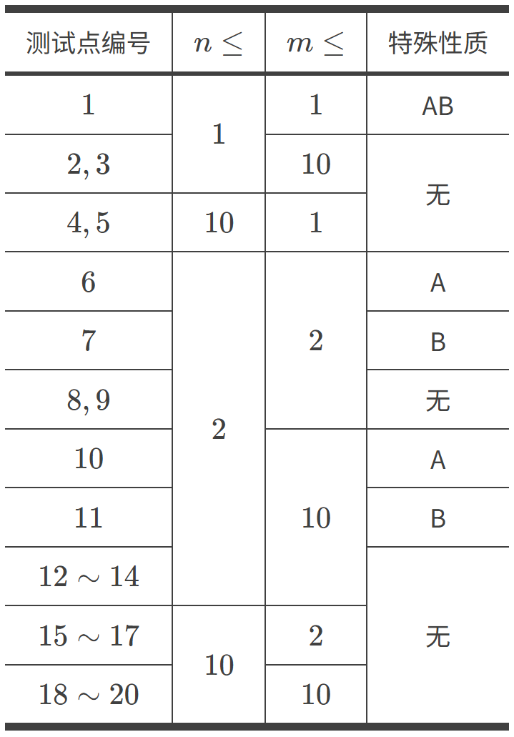 - $1 \leq n \leq 10$, $1 \leq m \leq 10$;